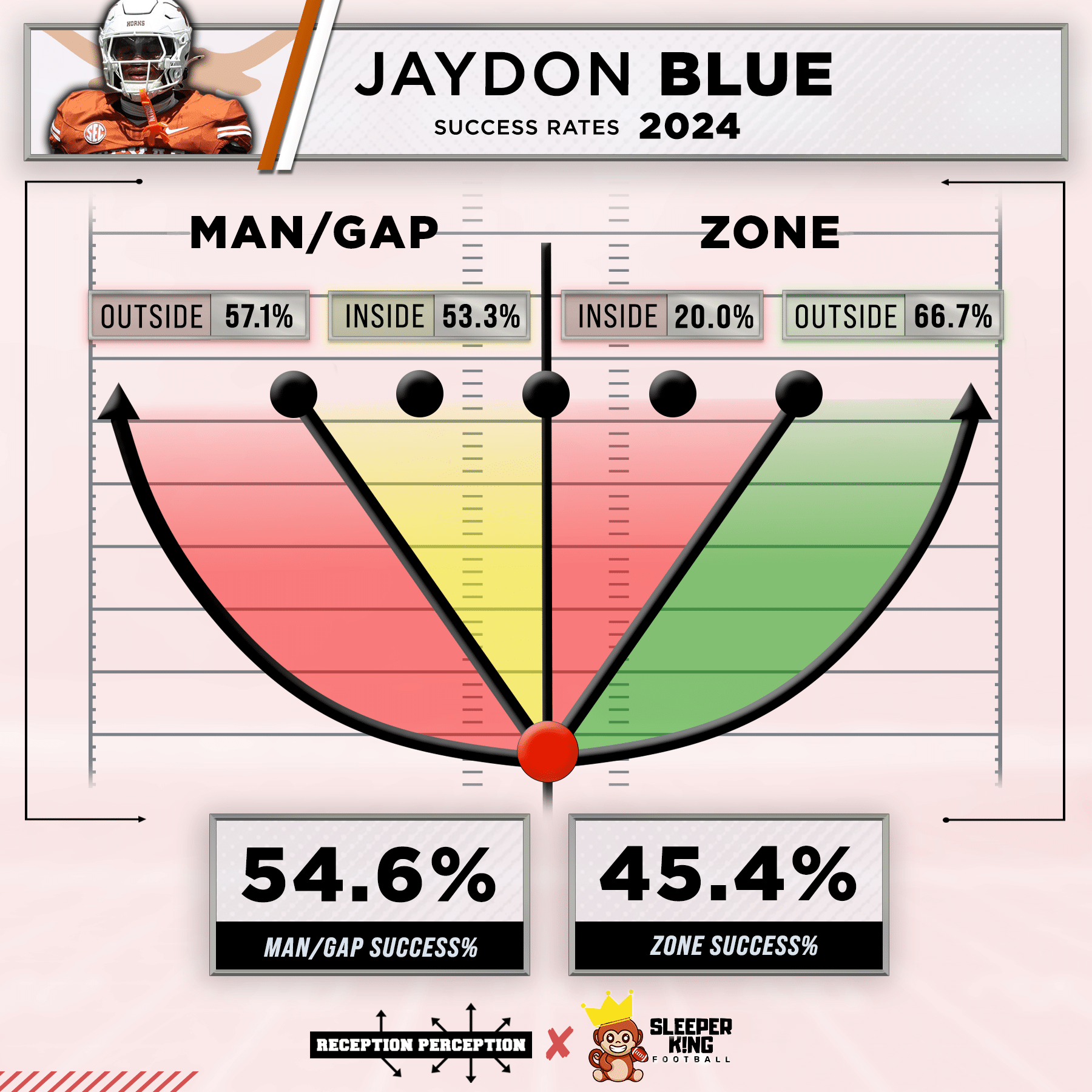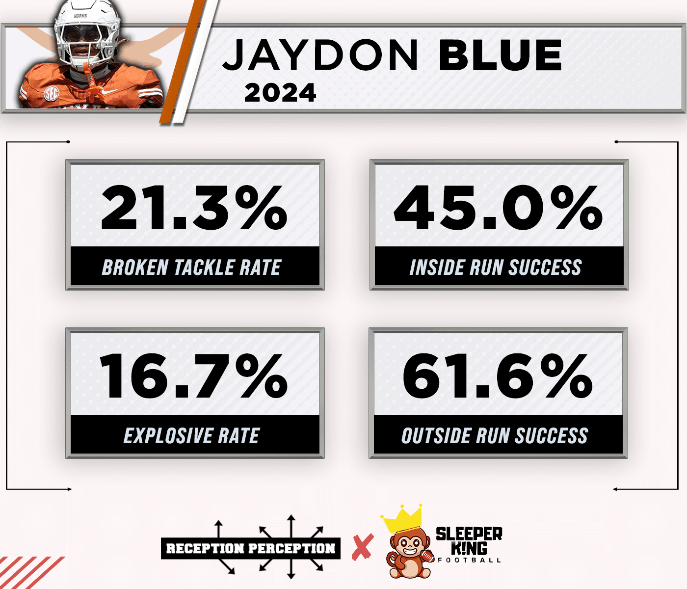 That’s what this new Sleeper King/Reception Perception tool is aiming to do, not just provide you great data points on running back skills, but also marry that data to existing team run tendencies (provided by Sports Info Solutions and FTN) to give you the most informed running back takes possible.